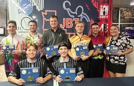 Malakai Bachteler and Spencer Kenyon began round one of the handicap finals with a win over the AZ/NV team of Brendan Bobersky and JR Barczyszyn. They rolled on in game two, beating two Bishop brothers, Deklyn and Camryn, to advance to the final. Top seeds Max Searle and Xander Johns are high school teammates, and took advantage of experience with team bowling to stage a second half comeback in the title match, eventually coming up with the win for their first career JBT title each.