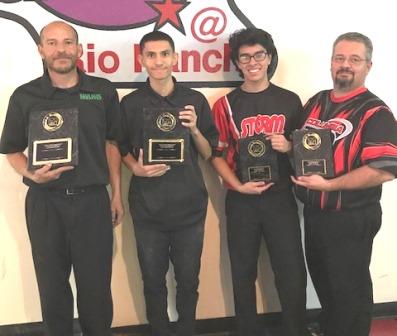 scratch champs Nick Devlin & Zach Wojciechowski; handicap champs JJ & Jayden Martinez & runners-up George Sandoval II and III